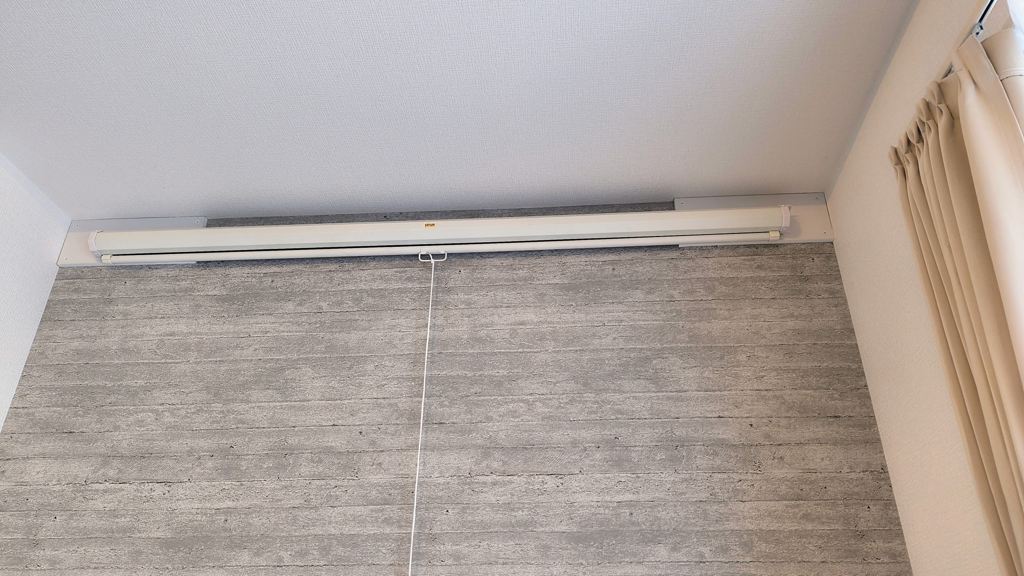 こんにちは。 柿沢商会です。 八王子市のお客様からロールスクリーン設置のご依頼です。 某マッチングサイトで探したけれど 対応出来る業者さんが見つからず お問い合わせを頂きました。 設置した壁はリビングですが、普段はテレビ番組を観ないそうでロールスクリーンに決めたとの事です。 大迫力の画面で映画やスポーツ中継、 楽しんで下さい!